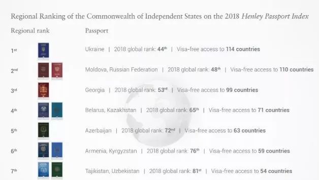 中东地区以色列护照最好用,2018年有155个免签国,第二名是近年来大出风头的阿联酋,有133个免签国。俄罗斯和独联体国家2018年护照排名,乌克兰排名第一,摩尔多瓦和俄罗斯排第二。非洲最好用护照是塞舌尔,有141个免签国家,毛里求斯第二名,有134个免签国,南非排第三,有99个免签国。