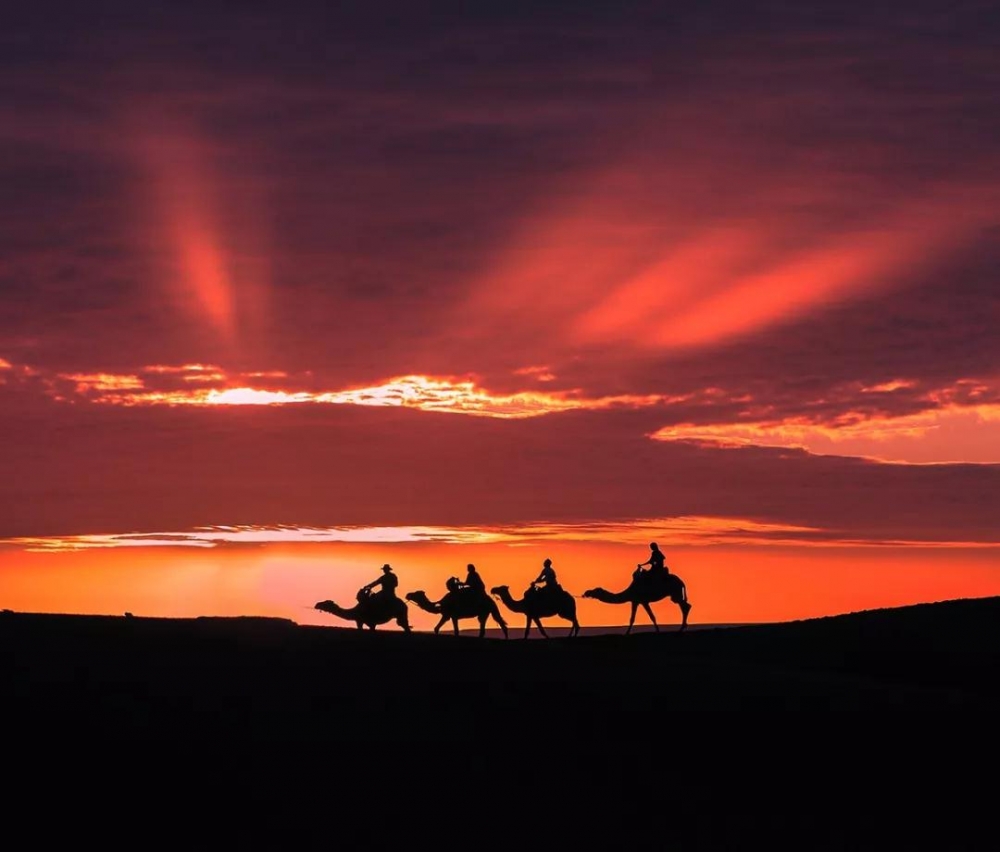 大漠,孤烟,驼铃, 落日,这里的撒哈拉沙漠太独特太吸引人,三毛曾经说过:“每想你一次,天上飘落一粒沙,从此形成了撒哈拉!”广阔壮观的风景,没有城市的喧嚣,来到这里,心中自然会响起那苍凉悠扬的歌声,无论是白天还是黑夜,在这里看风沙扬起,看落日余晖,看星空璀璨,那每一眼的风景,必会成为人生中最美好的回忆。