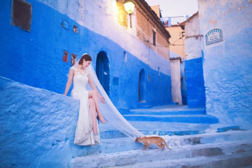 舍夫沙万,应该说是每一个来到摩洛哥的人都不会忘记的存在,蓝色的大门,蓝色的墙壁,蓝色的阶梯,蓝色的地面,在这里,你会忍不住停下脚步,去欣赏它的蓝色之美,如果你喜欢喵星人,说不清那转角的路上,就会有慵懒的身影,就像这座清新的城市一样,那悠闲轻松的氛围,会让你的每一分钟都有美的享受。