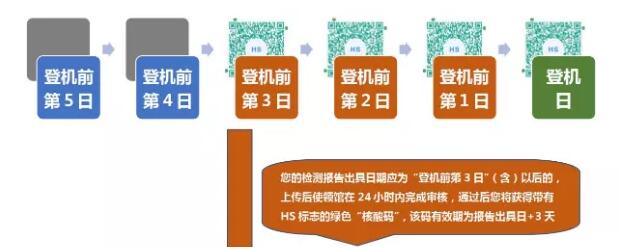 据中国驻美国大使馆2020年9月4日通知发布的通知,自美国搭乘直飞或经第三国转机航班赴华的中、外籍乘客,须于登机前3天内完成新冠病毒核酸检测,并凭核酸检测阴性证明申领带“HS”标识的绿色健康码(适用于中国公民)或健康状况声明书(适用于外国公民)登机。