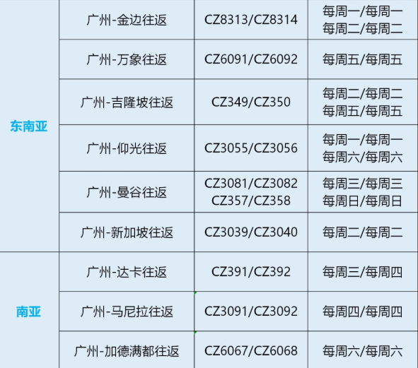 附上南航10月航班计划