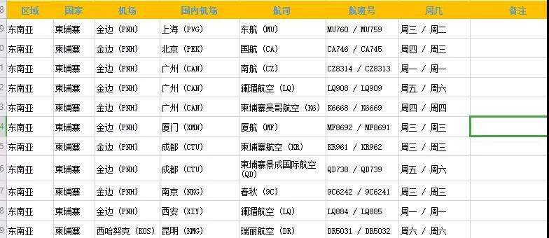 柬埔寨直飞中国航班有很多,我就不一一写出来了,我就直接给大家一副图看: