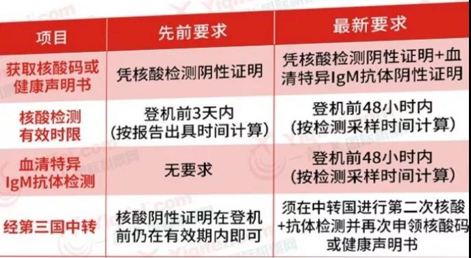 以下国家出发乘航班来华/回国的中、外籍旅客,必须持有经中国驻所在国使领馆审核通过的航班起飞前48小时内『核酸+血清双检测证明』