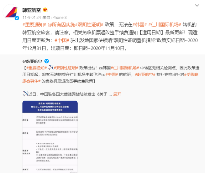 自愿退票(航班正常):联系韩亚航空中国客服或购票代理,满足条件后全额退票