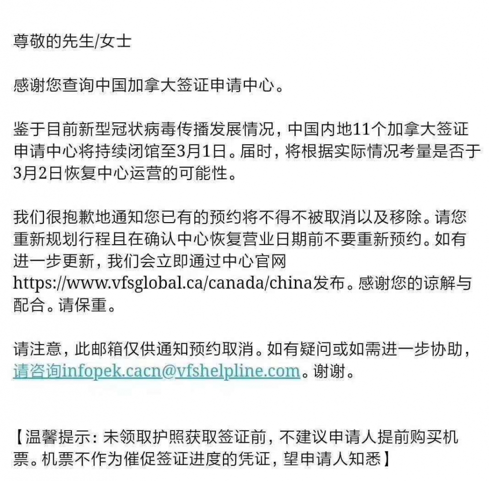 加拿大:关闭至2020年3月1日,恢复运营时间待定