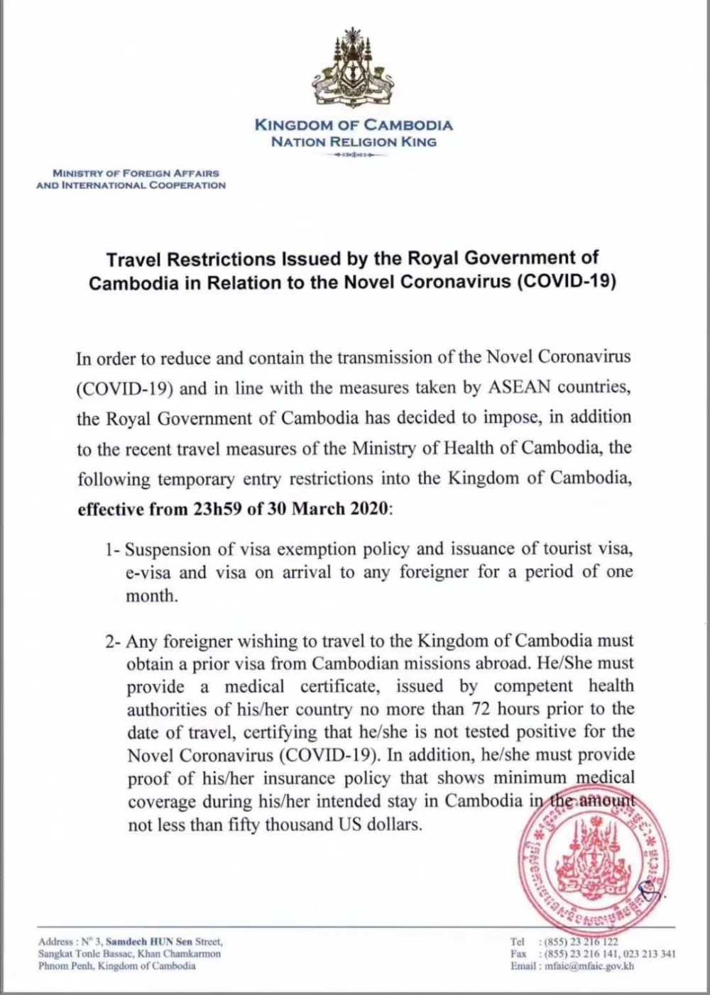 以上就是2020年3月30日起即将执行的柬埔寨入境新规,我们会尽快研究,看一下如何更好的帮客户快速办理下来健康证书等入境条件,如果研究成功,会专程写一篇文章通知各位新老客户,大家可以持续关注我们江西顺签哦。谢谢大家!