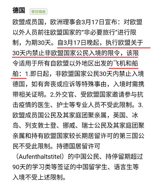 答:根据“欧盟”非必要旅行禁令,3月17日到4月17日期间是禁止入境的。而且查询航班也是没有去德国的航班,所以是无法入境的。德国大使馆4月8日颁发的最新政策明确说明:目前暂不允许以商务、旅游或探亲为目的入境,或以定居为目的移居德国。建议取消前往德国的旅行计划,只允许紧急情况下必要的入境需求。 边检会逐一审核此次入境是否被允许。