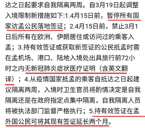 https://www.visajx.com/a/220.html)。另外就是在已经在孟加拉的中国公民,签证会自动延期,这里虽然写的是二个月,但是根据4月12日最新通知,已经是延期三个月,所以不用担心非法滞留的问题。
