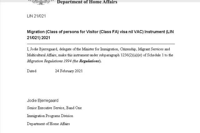 澳大利亚的旅游签证免费申请从2021年2月27日开始。