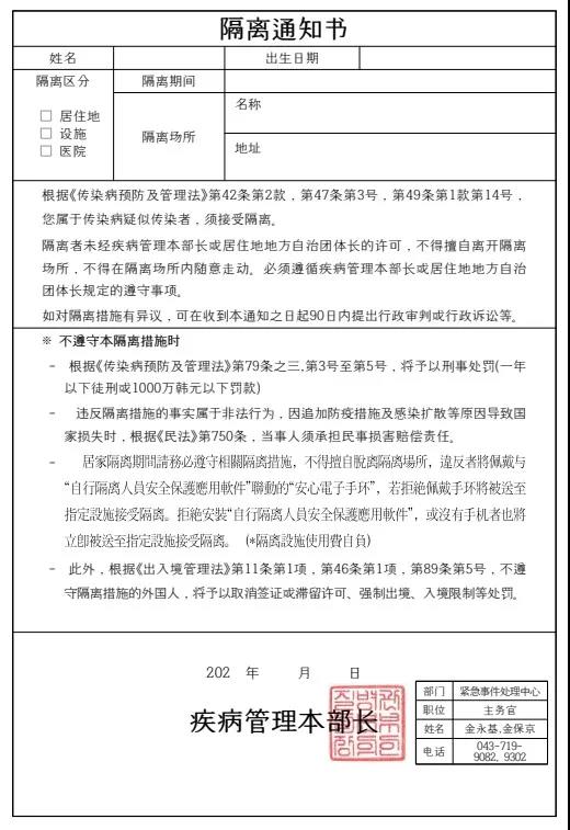 最新韩国隔离政策通知:入境后进行居家观察人员佩戴安心电子手环制度