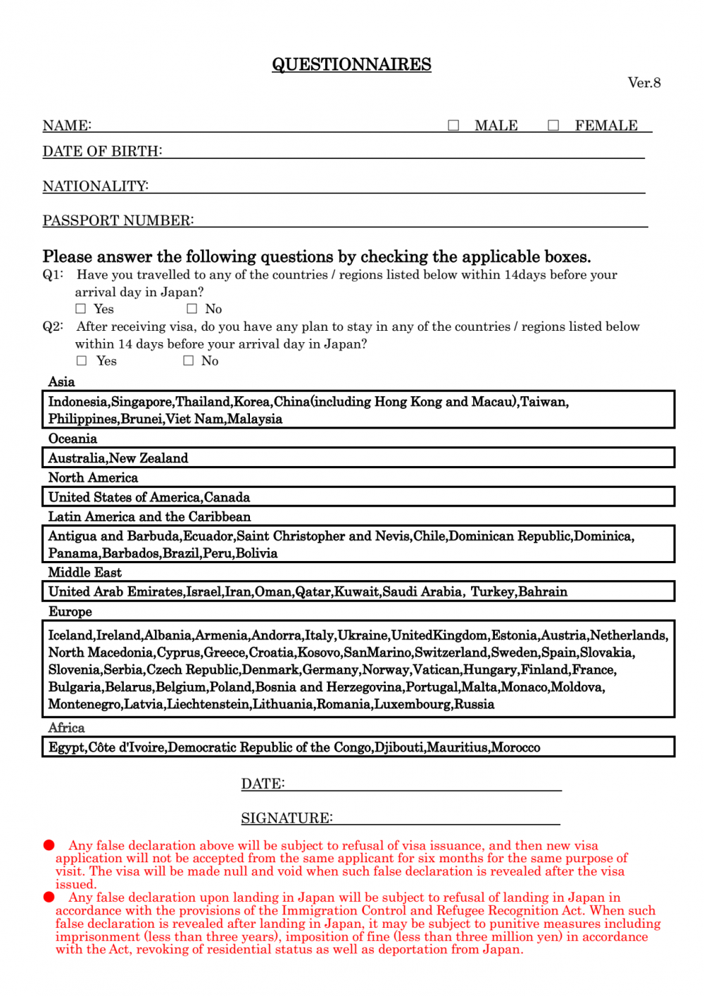 (3)在申请签证时,要求所有申请人提交新版提问书,选择“去过”或“有计划”申请人,除特殊情况外,签证申请原则上不予受理。