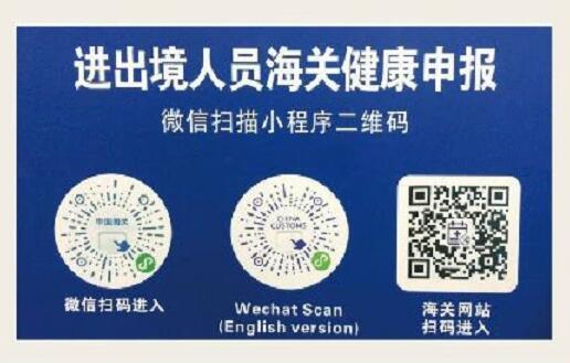 (5)入境中国时需要填写“进出境人员海关健康申报”请您提前准备,方便快速通关。进出境人员海关健康申报,微信扫描小程序二维码