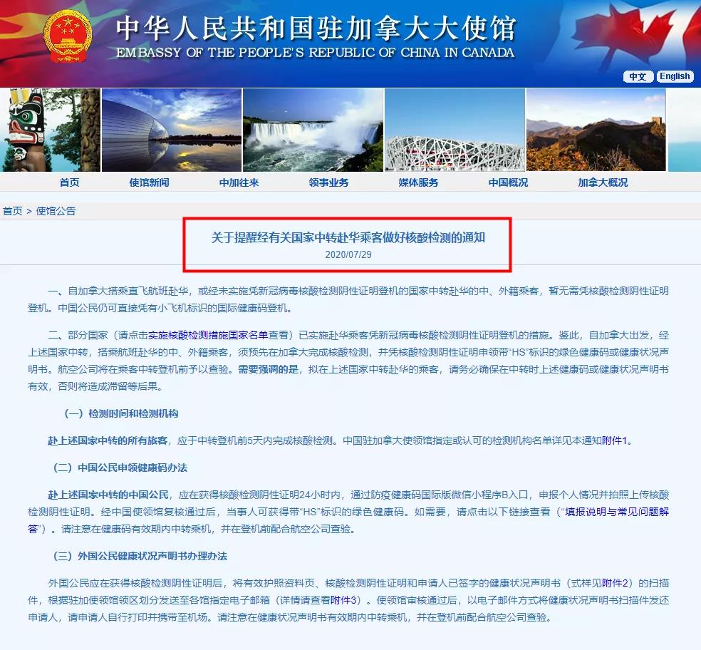 一、自加拿大搭乘直飞航班赴华,或经未实施凭新冠病毒核酸检测阴性证明登机的国家中转赴华的中、外籍乘客,暂无需凭核酸检测阴性证明登机。中国公民仍可直接凭有小飞机标识的国际健康码登机。