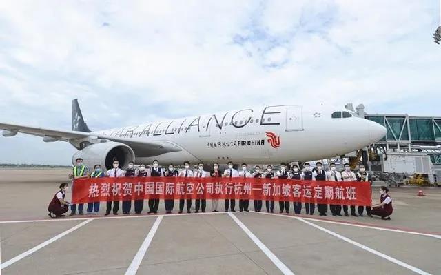 从7月31日起,国航开始执飞杭州—新加坡客运定期航班,这是时隔16年,国航再次执飞杭州—新加坡航班,也是疫情发生以来,国航执飞的第三条国际客运定期航班。