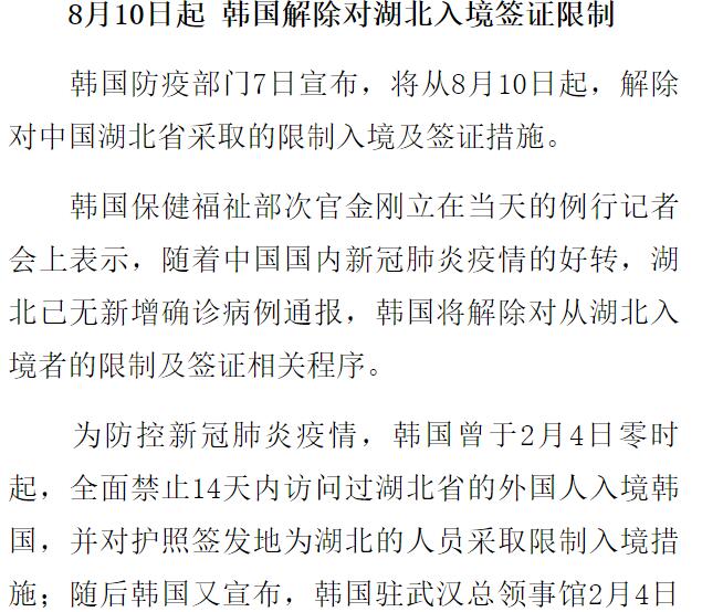 2020年8月10日起,湖北户口护照允许入境韩国,湖北韩国领事馆颁发的韩国签证可以正常使用。