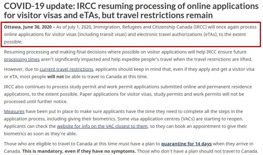 尽管加拿大旅行限制仍然适用,但加拿大移民,难民和公民身份(IRCC)恢复处理旅游签证可能是一个重要的转折点。
