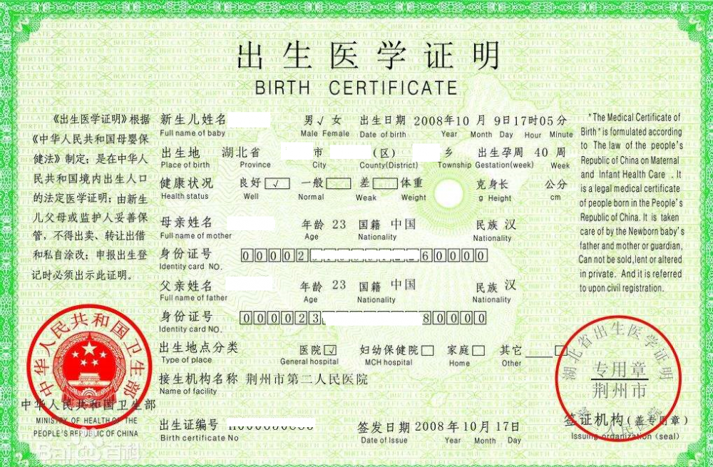5.注:18岁以下小孩需出具:出生证明公证书(