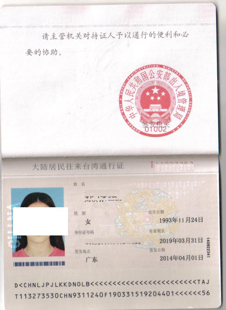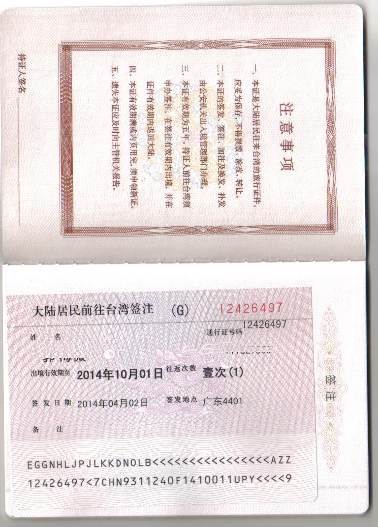 一、办理台湾通行证及G签(大约7-15个工作日出证,以当地公安局为准)